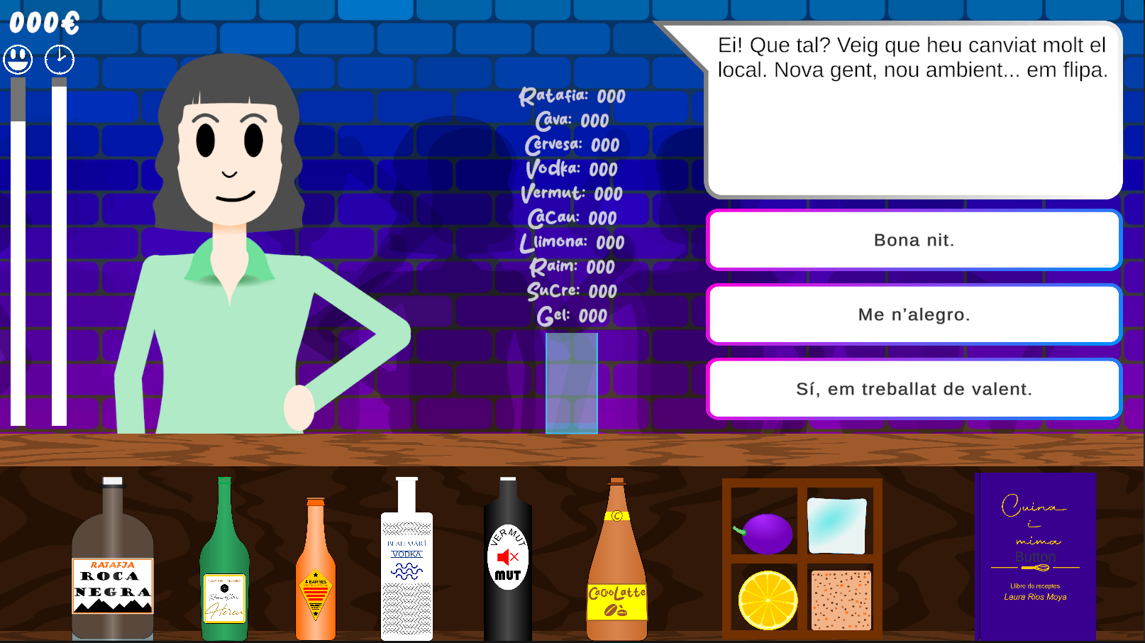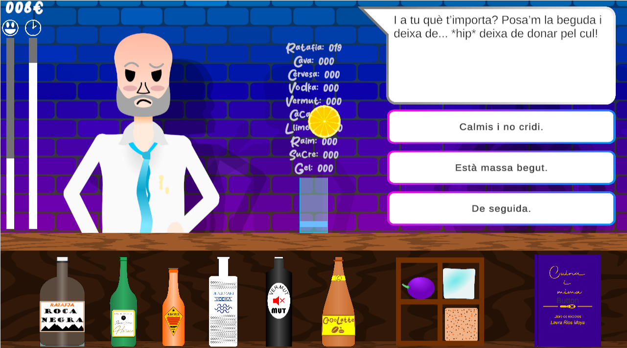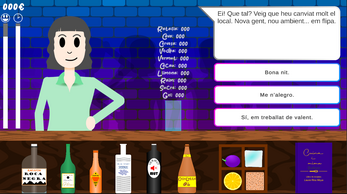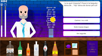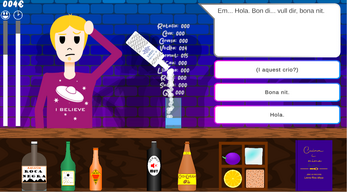 As part of the contest rules, the game is written in Catalan and procures a more narrative approach. In order to allow for some dynamic gameplay, the entire dialogue sequences occur during a countdown, so the player has to combine correct dialogue choices with incredible barista skills to make the customers happy while learning more about their lives.