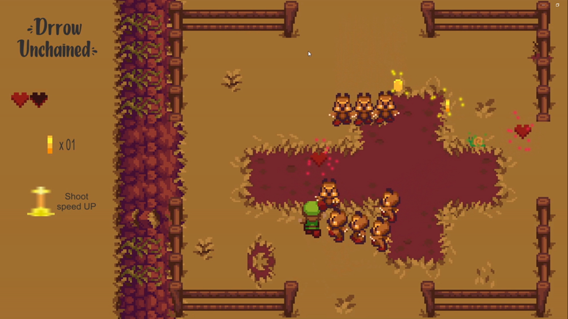 Inspired by Stardew Valley’s cowboy minigame, Drrow Unchained was developed as part of the final 2D module project during my studies at UOC. In the game, the player controls a powerful archer who must survive multiple waves of enemies in a 2D top-down shooter.